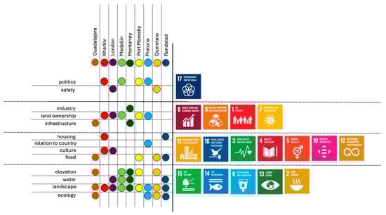 - After creation of the maps and the ranking of regenerative planning drivers, the findings were linked to the SDGs, based on the order of objectives as proposed in the so-called ‘wedding cake’ [65,66].
