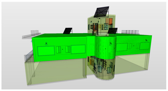 The [1] methodology is followed for the approximate creation of the external shell of the existing buildings, creating a homogenous internal space without room categorizations. For the newly made constructions, the architectural and topographical plans are used for the exact and accurate recreation of the various internal room classifications modeled for the new constructions.