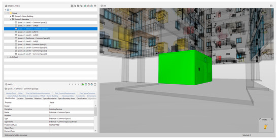 The importance of BIM has been highlighted as a new standardized medium that can contribute to the construction, land management, cadastral, and sustainability sectors. BIM applications regarding 4D research have been developed to boost the efficiency of construction projects [18]. A BIM-based safety tool for detecting errors and waste in construction sites has also been developed [19]. The role of BIM in optimal energy management and building operations has also been extensively researched [20]. Practical paradigms of BIM-enabled decision-making have been studied for the construction stages of buildings in order to design and compare different scenarios [21]. IFC is a capable data format for suitability and energy simulations, as has been shown in various cases [22]. BIM has also been studied under the prism of 3D cadastral and land management applications. A BIM/IFC proposal merged with the international cadastral standard of LADM (Land Administration Domain Model) has been constructed for the 3D visualization of complex legal entities as volumetric prisms in one open platform [2]. The IFC schema can also be extended and properly adjusted in order to confront land management issues and cover complex legal entities in multi-story and high-rise complicated constructions [23]. Crowdsourced applications centering around BIM and 3D cadastral surveys in one homogenous open background have also been developed [24]. BIM-based queries that can extract property and ownership information have also been designed [25]. BIM can greatly contribute to reforming the current cadastral state as it offers comprehensive 3D visualization and because, as it has been stated, 2D cadastral registries fail to present the complex legal reality of modern urban structures [26].