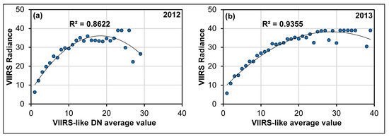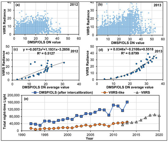 - Li, X.; Li, D.R.; Xu, H.M.; Wu, C.Q. Intercalibration between DMSP/OLS and VIIRS night-time light images to evaluate city light dynamics of Syria’s major human settlement during Syrian Civil War. Int. J. Remote Sens. 2017, 38, 5934–5951. [Google Scholar] [CrossRef]