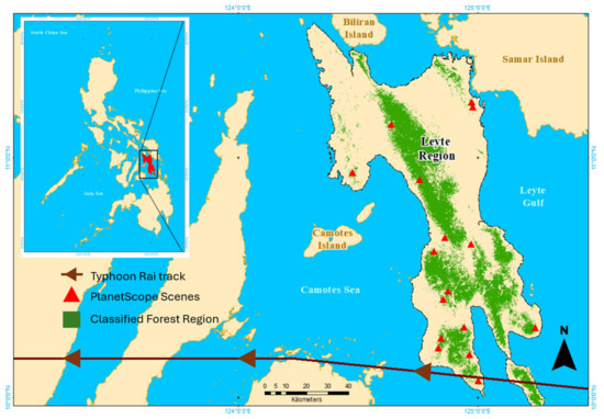 Magallon, B.J.P.; Tsuyuki, S. Typhoon-Induced Forest Damage Mapping in the Philippines Using Landsat and PlanetScope Images. Land 2024, 13, 1031. https://doi.org/10.3390/land13071031