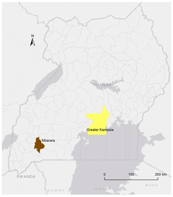 The study focused on two urban centers: Kampala and Mbarara (Figure 1). Kampala serves as Uganda’s capital and largest city, while Mbarara functions as a regional urban center in Western Uganda.