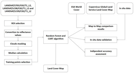Flowchart of the methodology applied in this work to obtain land cover maps.