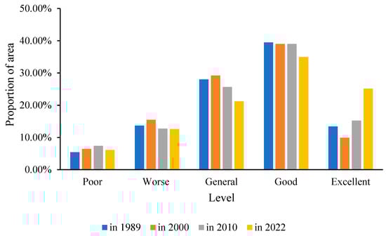 Statistical figure of hierarchical RSEI in 1989, 2000, 2010, and 2022.