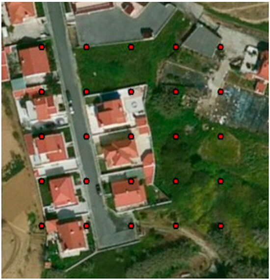 An example of a PSU (area of the image) and SSUs (red dots) within. SSUs are organized in a 20 m grid (25 sampling points) to assess impervious surfaces implemented by the CLMS service providers in the validation of the IMD layers.