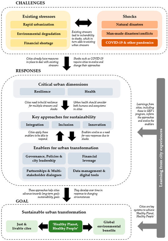 As various stresses, especially climate change, reach their peak, it is critical for cities to adopt approaches that allow them to address climate, nature, and inequality issues and to better prepare for future shocks like COVID-19 in a systemic way, leveraging the inherent benefits of urban areas. Urban advantages such as density, local political leadership, direct control over planning, global connections with other cities and stakeholders, innovation climate, and investment potential are poised to support sustainable urban transformation. The global recognition in multilateral conventions and strategic support to cities through global sustainability programs such as the GEF’s Sustainable Cities Program (GEF-SCP) [20] can give cities the motivation to act. Guided by an integrated and holistic urban sustainability framework, cities can advance resilience and health both in the aftereffects of COVID-19 and beyond.