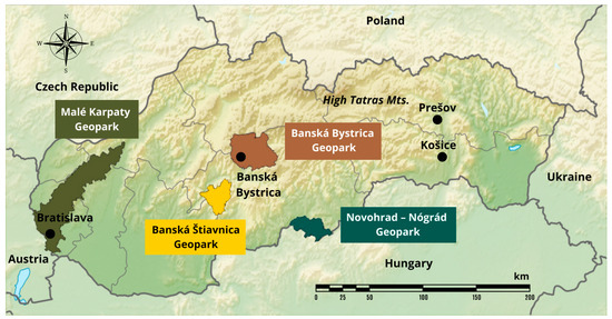 Map of the geoparks of the Slovak Republic. Modified by the authors according to [30].