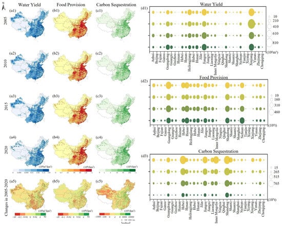 | Year | Water Yield (Billion m3) | Food Provision (Million Tons) | Carbon Sequestration (Million Tons) | |||