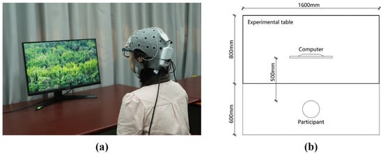 Due to equipment and venue limitations, this study primarily included participants from the university community (students, teachers, and other school staff). We recruited participants from Guangzhou, China, using flyers and posters on university campuses, and via email and the social media platforms WeChat and Tencent QQ. The participants were required to have no physical or mental illnesses and to not be taking any medication. The participants were instructed to avoid smoking, alcohol consumption, and intense physical activity throughout the study period and to ensure sufficient sleep the night before the experiments, as these factors might affect the brainwave measurements [72]. Background information on the participants, including their gender, age, educational level, and permanent residence, was collected via a questionnaire. To increase the scientific rigor and applicability of the study results, we recruited 100 participants (50 urban and 50 rural residents) aged 18–58 years (M = 25, SD = 6.664). Among them, 40 participants from the South China University of Technology (20 males and 20 females) participated simultaneously in both physiological EEG and eye-tracking experiments. The descriptive information is shown in Table 1.