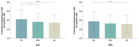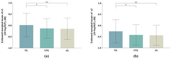 We used a wireless EEG system (model NE Enobio 8, from Neuroelectrics, Barcelona, Spain) and its accompanying software to collect the EEG data. An electrode cap was worn by the participants according to the international standard 10–20 system, recording brainwaves from the forehead above the eyes (at the FP1 and FP2 positions). The FP1 and FP2 positions are located in the frontal lobe area, which plays a key role in processing emotions and stress responses. Before the participants viewed the scene images, we recorded 1 min of EEG data from a blank scene as a baseline [75]. When switching between scenes, we input event markers to segment the subsequent EEG data. The EEG data were recorded in real-time (at a rate of 512 Hz). The output raw EEG signals were pre-processed using the Matlab-based EEGLAB toolbox (version 14.0.0). EEGLAB is widely used by researchers for processing continuous EEG recordings [76,77]. In this process, the EEG signals were referenced to the average value for the bilateral mastoids, and artifacts such as electrooculographic and electromyographic interferences were removed through independent component analysis [78]. The EEG signals were then segmented for each participant in the corresponding scenes. To quantify the EEG signals, we used the Letswave toolbox to extract the frequency domain features. The logarithmic power values of the α1, α2, β1, and β2 waves were extracted as defined in the EEG power spectrum [79] to obtain the quantified EEG metrics required.
