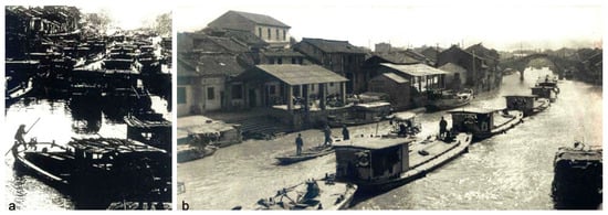 The canal scenery in the western suburb of Changzhou City. (a) was taken in the 1970s, and (b) in 1977 [41].