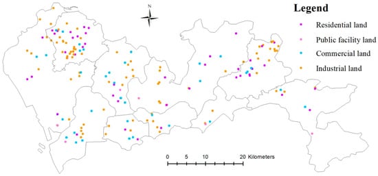 In China, land leasing is implemented by the local government, which delegates the right to lease land to the district governments. The district governments decide on land leasing according to the district’s conditions and land planning [1]. There are various land uses, such as residential, commercial, industrial land, etc., and their characteristics, prices, and surrounding environments are different. Thus, it is very important for the government to decide which type of land to lease. In recent years, the revenues from leasing land have made up a high proportion of total government revenues in China. According to the Statistical Yearbook in China, state-owned land leasing revenue increased from CNY 2386.1 billion in 2011 to CNY 8705.1 billion in 2021. The increase in local income through land leasing has led to problems such as land oversupply and housing affordability issues in the land and real estate markets [5]. In China, the demand for construction land is exhibiting a marked upward trend, particularly in economically prosperous provinces. It is imperative to enhance the efficiency of allocating construction land within the country [6]. Furthermore, a balance must be considered between preserving arable land and meeting the demands for construction land [7]. Thus, the government should consider the factors influencing the leasing of various types of land when they decide, balancing public revenues and sustainable development of a city.