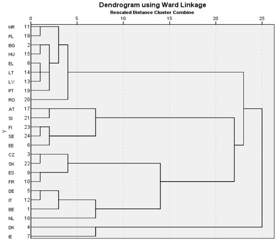 Dendrogram using Ward Linkage method for EU-24 countries. Source: authors’ own calculations.