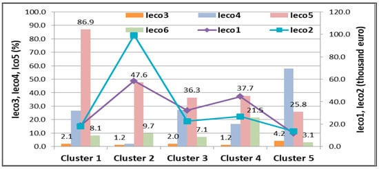 Cluster 5 comprises eight countries (Bulgaria, Greece, Croatia, Lithuania, Latvia, Poland, Romania, and Hungary). This cluster mainly consists of new EU member states (except for Greece) and former centrally planned economies, which still predominantly lag behind the mature economies of the EU. The values of all six economic indicators reflect the lowest level of economic sustainability in agriculture. For instance, the average labor productivity in this cluster was 11.75 thousand EUR/AWU, which represents only 20% of the average labor productivity achieved by the countries included in cluster 2. The situation is even worse in terms of land productivity, which accounted for only 13.8% of the average land productivity in cluster 2 (13.7 compared with 99.1 thousand EUR/1 ha). The lowest level of productivity can be explained by the existence of an agriculture characterized by the highest share of farms with small economic size in total farms (57.8% compared with 2.1%—cluster 2) and the lowest level of investments in agriculture, expressed by GFCF in agriculture (25.8% of GVA in agriculture) and GBARD in agriculture (3.1 Euro per inhabitant).