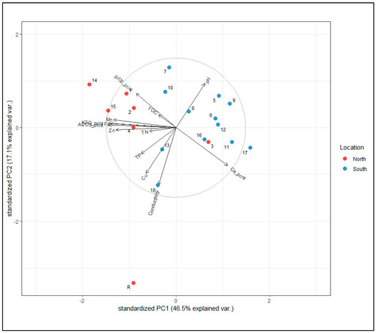 Principal Component Analysis (PCA) for the geochemical parameters of soil samples.