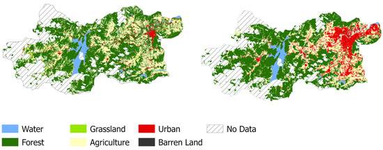 Land use and land cover in Huangyan in the years 1992 (left) and 2020 (right). Source: maps by A. M. Haase, IOER.