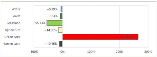 Relative change in land cover classes in Huangyan in the period 1992–2020. Source: modified from Xiao et al., 2022.