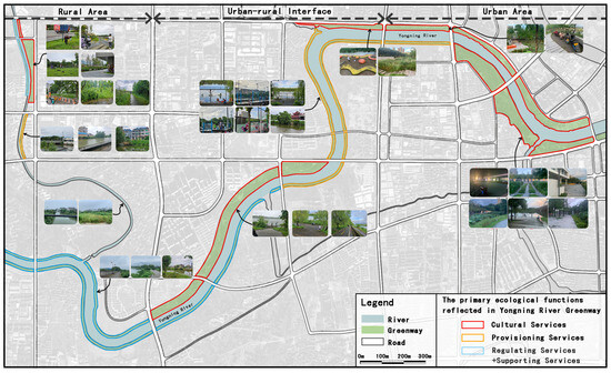 Our study investigates the greenway as a typical spatial feature serving ecological and social uses to discover how land use and landscapes change from the perspective of social–ecological systems. Our particular aim was to understand differences between the functions at the macro and micro scales as well as the interactions between the social and ecological uses.
