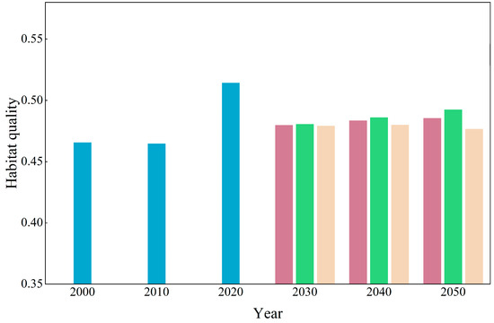Spatiotemporal changes in HQ and analytical characterization under three scenarios for 2020–2050.