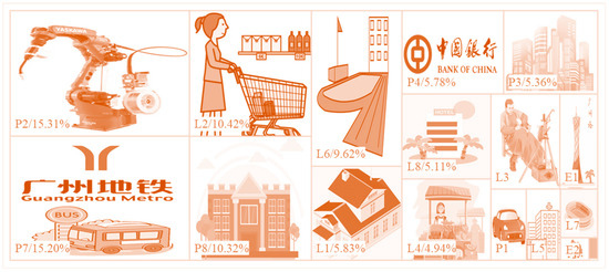Coupling POI big data with land cover/use types can reasonably be used to identify dominant PLE function patterns and structures. In general, POI big data reflect human activity characteristics. With enough equally distributed POIs, PLE function spatial patterns can be reliably identified. However, in practical applications, PLE functions are not in equilibrium, and POI type, quantity, and quality are not completely balanced in geo-space. For instance, in this study, 53.82%, 43.28, and 2.9% of the 879565 POIs were collected for production, living, and ecological functions, respectively. POIs recording P2, P7, L2, P8, L6, L1, P4, P3, L8, and L4 types accounted for 87.89% (Figure 8). This unbalanced collection of POIs may correspondingly reduce the recognition accuracy of the PLE function units. When the collected POIs in each block present an unbalanced distribution among types, different judgments of PLE functions will occur. For example, Zhaoqing’s higher proportion of production blocks was largely due to many forests being labeled as POIs providing forest product services, thus identifying these areas as production blocks.