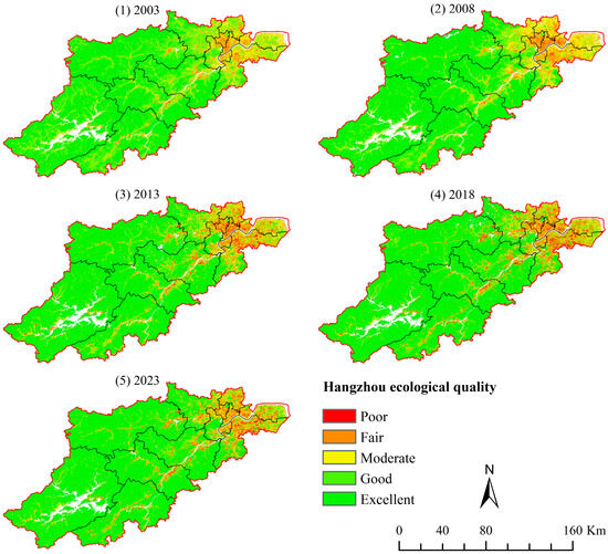 Spatial distribution map of ecological quality in Hangzhou, 2003–2023.