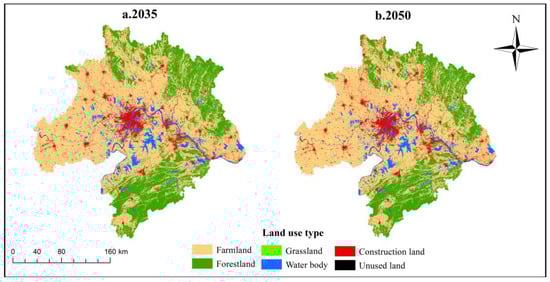 Land use types in Wuhan Urban Agglomerations in 2035 and 2050.