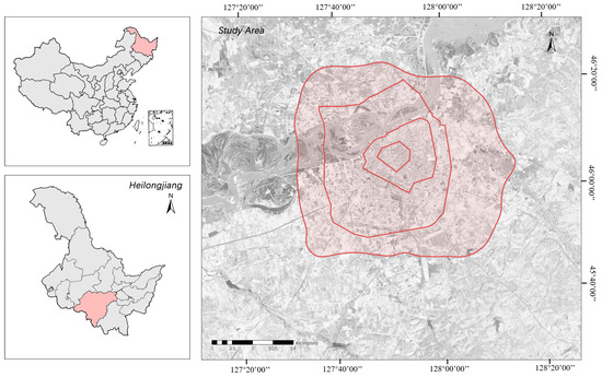 Harbin is located between 125°41′–130°13′ east longitude and 44°03′–46°40′ north latitude and is the capital of Heilongjiang Province. It is located in a midtemperate continental monsoon climate and severe cold region. Summer has average daily high temperatures of more than 19 °C. July has the highest temperatures, with an average high temperature of 27 °C and an average low temperature of 19 °C. The winter heating period lasts up to 180 days, with average daily high temperatures below −5 °C. January has the lowest temperatures, with an average low temperature of −23 °C and an average high temperature of −13 °C (https://weatherspark.com/y/142116/Average-Weather-in-Harbin-China-Year-Round accessed on 29 April 2024). Harbin is an important political, economic, and cultural center in Northeast China. As an old industrial base in northeastern China, it has experienced rapid development of heavy industry since the 1850s, with a large amount of land development. However, societal evolution and the reform of national policies have resulted in the phasing out of heavy industry. Government policies have shifted to a more diversified economic structure, leading to an economic decrease in Harbin and a decrease in the population in the administrative jurisdiction of Harbin City.