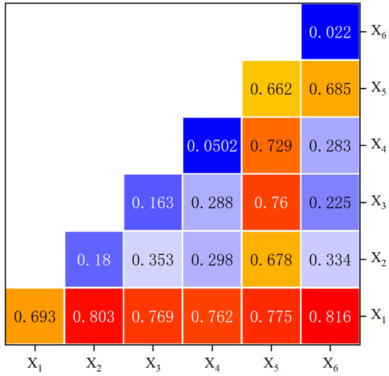 Interaction detection of driving factors for CCD between RR and THD. Note: X1: Public fiscal expenditure, X2: The ratio of the value-added of the tertiary industry to the secondary industry, X3: Per capita GDP, X4: Per capita years of education, X5: Scientific and educational expenditure, X6: Urbanization rate. The driving force behind the coupling between RR and THD.