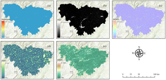 | Distance from roads (DISO) | Euclidean distance | Used to measure regional transport accessibility. | [30] | |