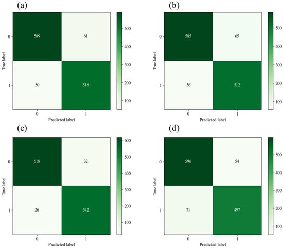 Confusion matrix: (a) RF, (b) SVM, (c) XGBoost, (d) AdaBoost.