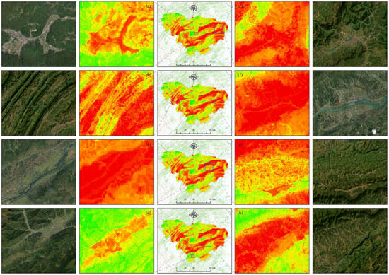 To visualize the predictive performance of the models, two representative regions, namely, the urban area of Zhangjiajie and the Wulingyuan District (an ecotourism hotspot), were selected for comparative analysis (Figure 11).