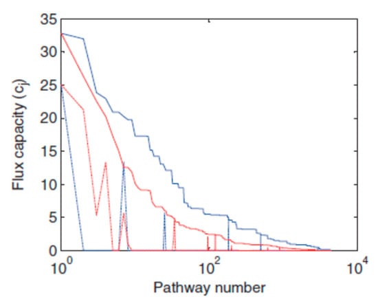 Figure 3a), which means that only a small subset of high-flux EPs played key roles in the network for the functions of the system, and a large number of low-flux EPs made the system more complex. We set a subset of EPs, whose
