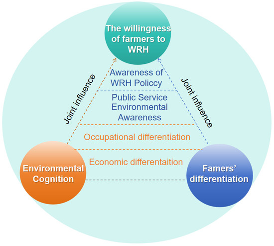 In conclusion, this study constructed a multi-dimensional and dual-perspective analytical framework aimed at gaining a deeper understanding of rural households’ intentions to participate in WRH. This framework not only integrates household characteristics, but also introduces the dimension of farmers’ environmental cognition (EC). We theoretically outlined the complex pathway of rural households’ willingness to engage in WRH. Through empirical analysis conducted in two pilot villages in East Hubei Province, we uncovered the diverse factors underlying WRH willingness and identified the most crucial determinants among them. Our findings emphasize the combined roles of rural household differentiation and environmental cognition in shaping WRH willingness, revealing a complex interplay and mutual influence between the two angles.