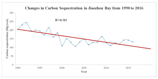 Carbon sequestration variations in Jiaozhou Bay (1990–2016).