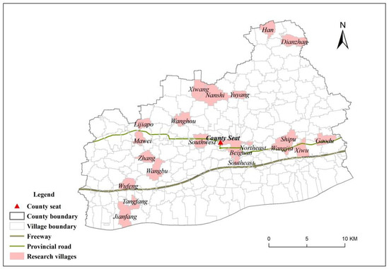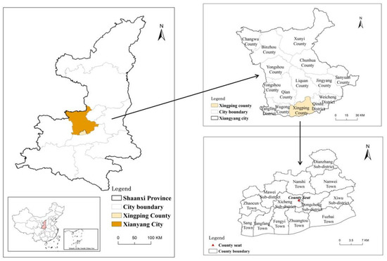 The study area of this paper is Xingping (Figure 1), Shaanxi Province, which belongs to Xianyang City, Shaanxi Province, and is located in the middle of Guanzhong Plain in Shaanxi Province. It was formerly Xingping County, which was approved by the State Council to be abolished as a county and set up a city in June 1993, and it is now a county-level city in the custody of Xianyang City, with twelve towns under its jurisdiction, a land area of 507 km2, and a resident population of 489,100 in 2022, of which 309,900 are urban, with an urbanization rate of 63.4%. Xingping is located in the north bank of the Wei River and the hinterland of Guanzhong Plain, with superior soil and water conditions, convenient transportation location, and relatively developed industry and agriculture, with a completed GDP of 30.181 billion yuan in 2022, and its county-level economic development level ranked among the top in the province. This study selected Xingping as the study area, mainly for the following reasons: first, the Guanzhong region of Shaanxi is the origin of agricultural civilization, and its traditional villages have a certain degree of representativeness, while Xingping is located in the hinterland of Guanzhong Plain, but also located in the fringe of the metropolis, and the study of Xingping residents’ satisfaction with the habitat environment has a strong practical significance for the construction of rural revitalization. Secondly, with the implementation of the rural revitalization strategy, Xingping’s agriculture, industry and multi-industry, the county economy in recent years, the development of relatively rapid. Overall, Xingping as a typical case in Guanzhong region, the relationship between its county habitat environment and the environment of residents’ life satisfaction needs to be further explored in depth.