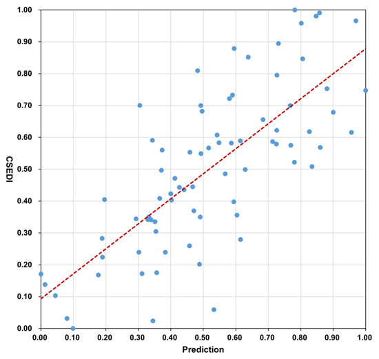 Figure 5. The model’s predicted values vs. the CSEDI values.