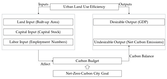 Theoretical framework for land use efficiency under the net-zero carbon city goal.