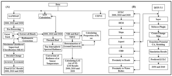 Figure 3. Methodological Flowchart (A) LST and UTFVI estimation (B) LULC prediction approach.