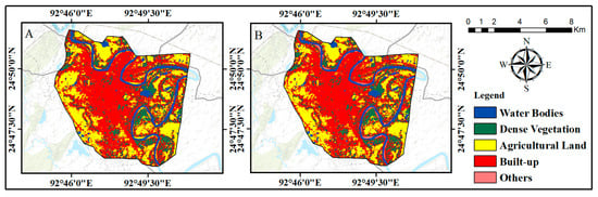 Figure 9. LULC for the years (A) 2030 and (B) 2040.