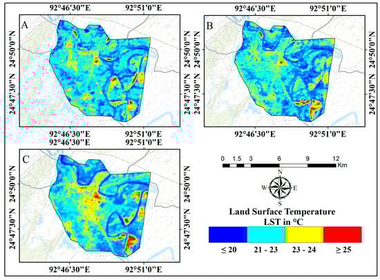 116. Abir, F.A.; Ahmmed, S.; Sarker, S.H.; Fahim, A.U. Thermal and Ecological Assessment Based on Land Surface Temperature and Quantifying Multivariate Controlling Factors in Bogura, Bangladesh. Heliyon 2021, 7, e08012. [Google Scholar] [CrossRef] [PubMed]