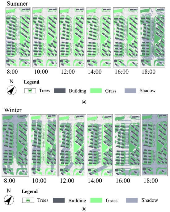 Shadow conditions. (a) Summer shadow conditions; (b) winter shadow conditions.