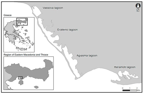 - Koutrakis, M.; Sapounidis, A.; Lachouvaris, D.; Chariskos, D.; Mirli, A. Fish assemblages of two adjacent coastal lagoons in river Nestos delta (NE Greece). Management 2010, 16, 171–196. [Google Scholar]