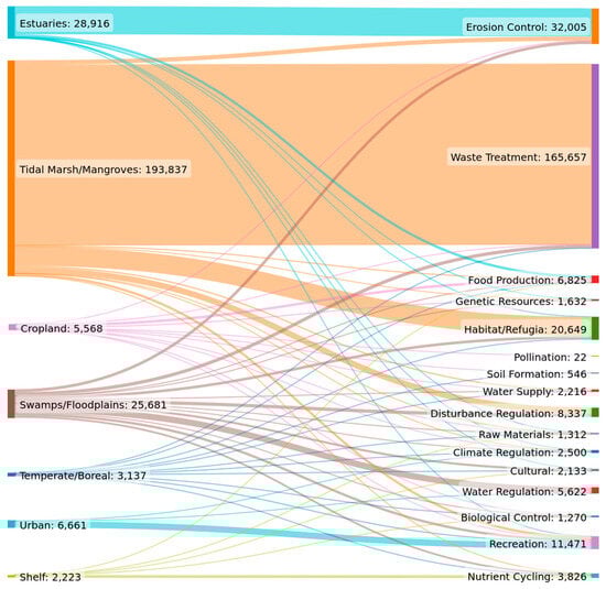 | Coastal Lagoons | 521 | Estuaries | 28,916 |