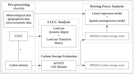 - Li, Y.; Yao, S.; Jiang, H.; Wang, H.; Ran, Q.; Gao, X.; Ding, X.; Ge, D. Spatial-temporal evolution and prediction of carbon storage: An integrated framework based on the MOP–PLUS–InVEST model and an applied case study in Hangzhou, East China. Land 2022, 11, 2213. [Google Scholar] [CrossRef]