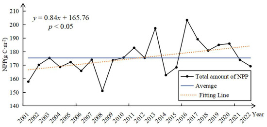 Statistics of Changes in NPP in Xinjiang from 2001 to 2022.