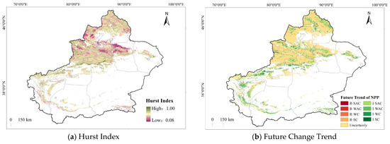 The spatial distribution of Hurst index and future trend of NPP in Xinjiang.