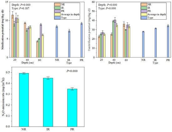 Nitrification potential, denitrification potential, and N2O emission rate at RRI, “Average in depth” refers to the average value for each soil layer.