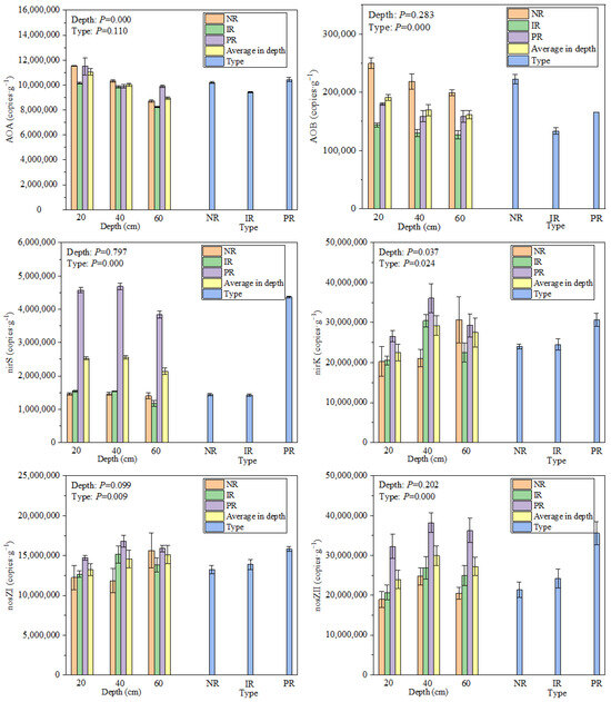 Nitrification and denitrification gene abundance at RRI, “Average in depth” refers to the average value for each soil layer.