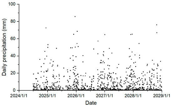 UKCP18 daily precipitation projection of a 5 km grid located in the study area from 1 July 2024 to 31 December 2028.