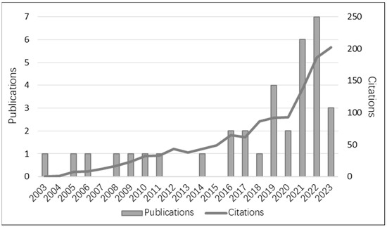 The initial search yielded a total of 53 publications. Upon examination of the titles and abstracts of the papers, it was discovered that the term “GIS” was associated with five terms that were irrelevant to the topic of this research: management information systems (GIS), geographical indications (GIs), green innovations (GIs), greenfield investments (GIs), and green investment scheme (GIS). The initial corpus of papers was then subjected to a manual review, with those deemed to have limited relevance to the topic of this study being excluded. The screening process was further refined to yield 35 papers published between 2003 and 2023, which were used as the basis for the quantitative analysis of this study.